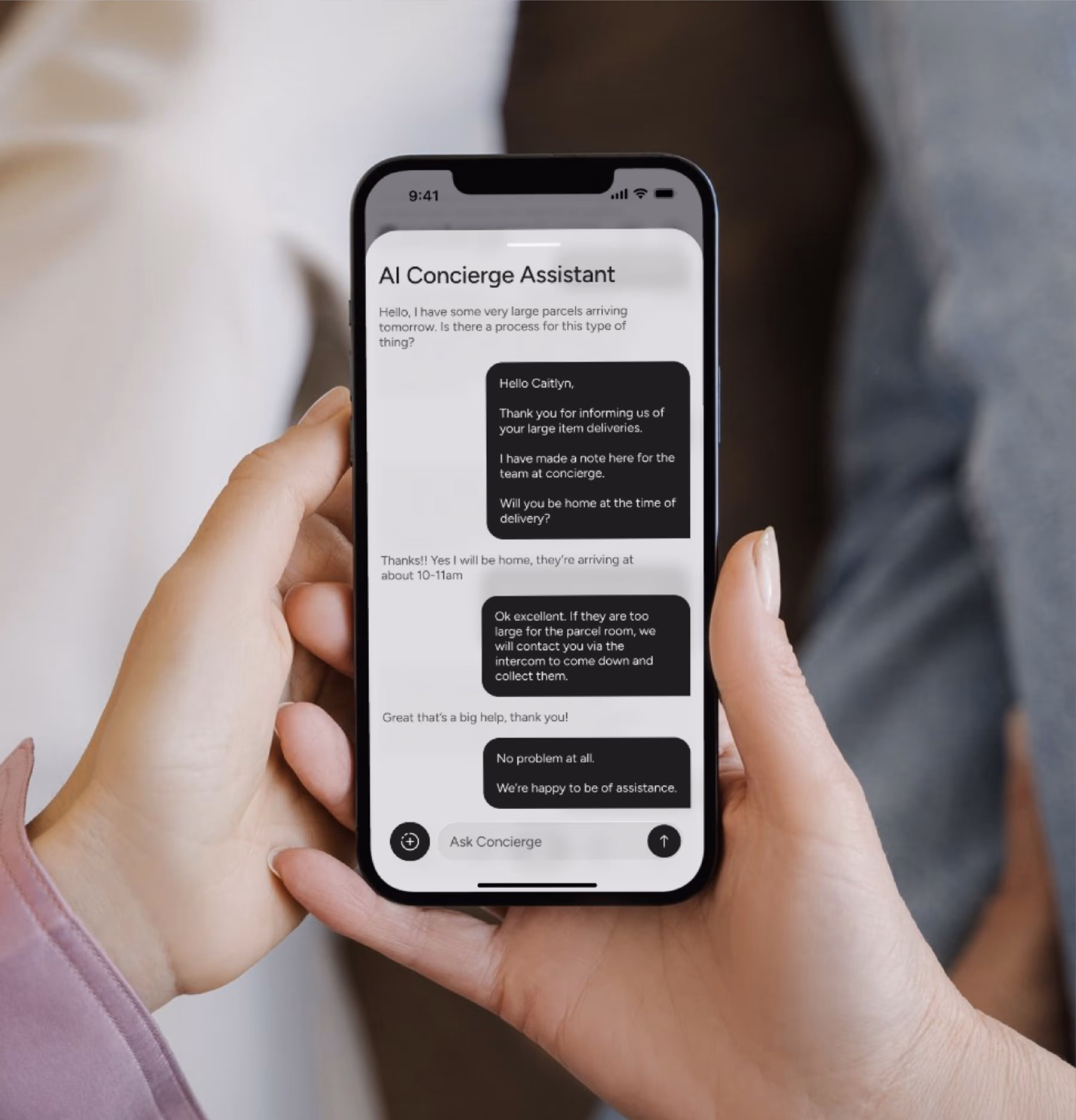 An AI Concierge for Every Resident. With instant answers, recommendations, requests and support, available 24/7 inside the resident app.